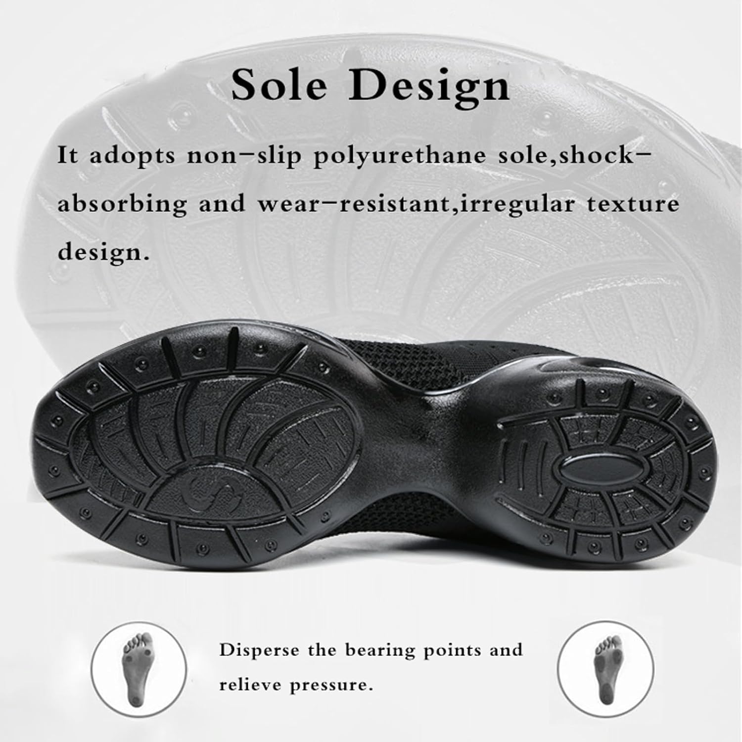 • The upper of the non-slip dance shoes is made of mesh material, which is lightweight and breathable, providing a comfortable sock-like fit.