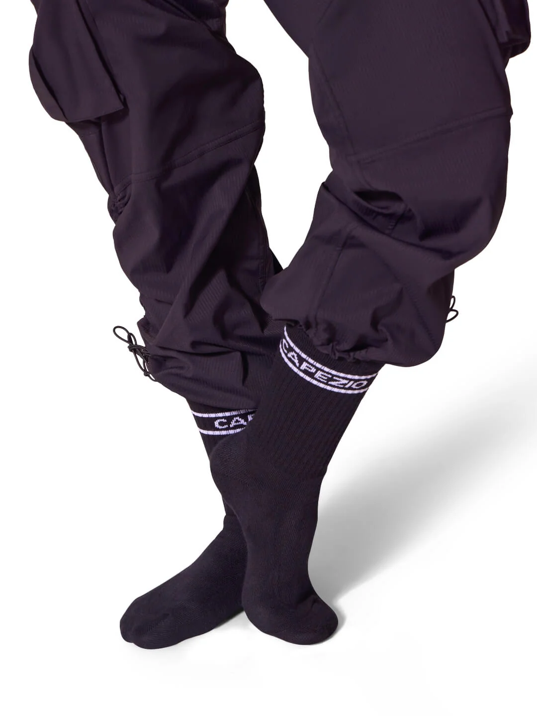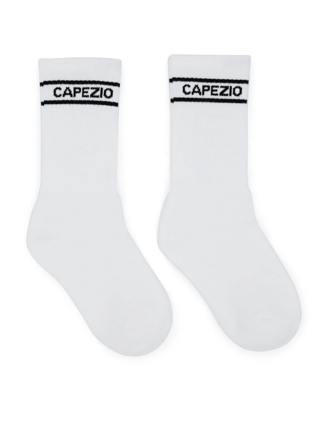 Step into classic comfort in the Unisex Varsity Crew Sock. These vintage-style crew socks are made of a heavenly cotton/poly/lycra blend and are perfect for lounging or on the go. Featuring a sleek Capezio logo in black that is sure to stand out, and cushioning that will keep your feet energized all day long. Wear them tall or scrunched with your favourite tap shoes or sneakers for the perfect look!