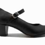 Amateur shoes for flamneco dance in leather with a strap and nails. They are the ideal shoes for beginners, it is a model for girls who are going to start learning to dance flamenco. Taking into account that the heel is made of plastic, they are nor recommended for people with a medium or advanced level in flamenco dance.